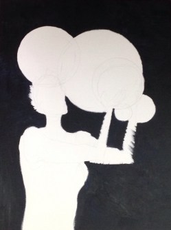 The painting ‘walking among the stars’ shows my character Kathryn as she navigates a holograph of the galaxy and finds the planet Meniscus.