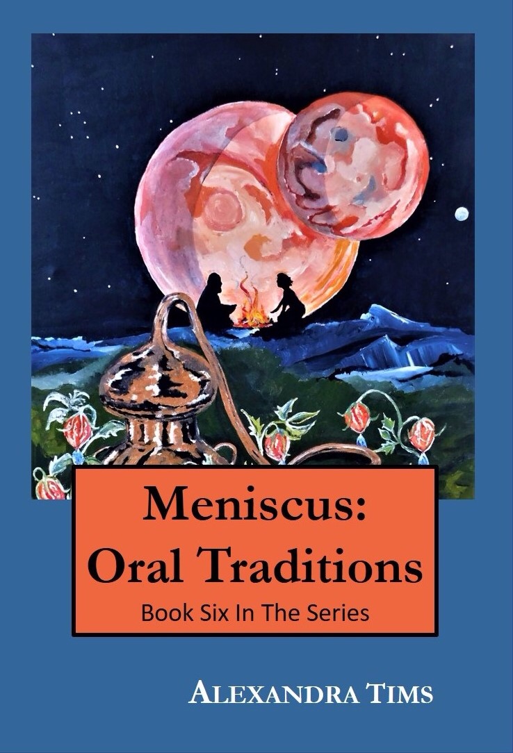 Meniscus: Oral Traditions is a great entry point to the Meniscus Science Fiction Series. Each Meniscus book is written as a readable long poem and is illustrated by the author. The books are a quick read, and include both adventure and romance. Oral Traditions tells the story of Tagret’s first days on the planet and her meeting with Rist who has a secret that will challenge their growing love.